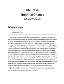 3. Too many things to be don,e and what will likely happen is that you dont finish all of them the best you can. I would focus on the art style and the TUM aspect, which might be fun to incorporate typical situations students have gone through at TUM.