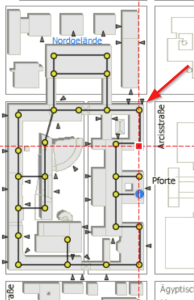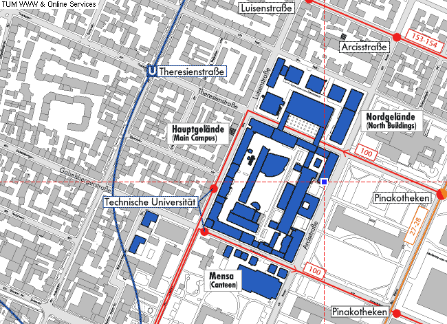 The lectures and tutoring sessions will always take part in room 0790. The room is reserved from 13:30 to 17:30 on each Monday. Please note: The room is not accessible from the main entrance, use the entrance on building 7 (see red arrow above).