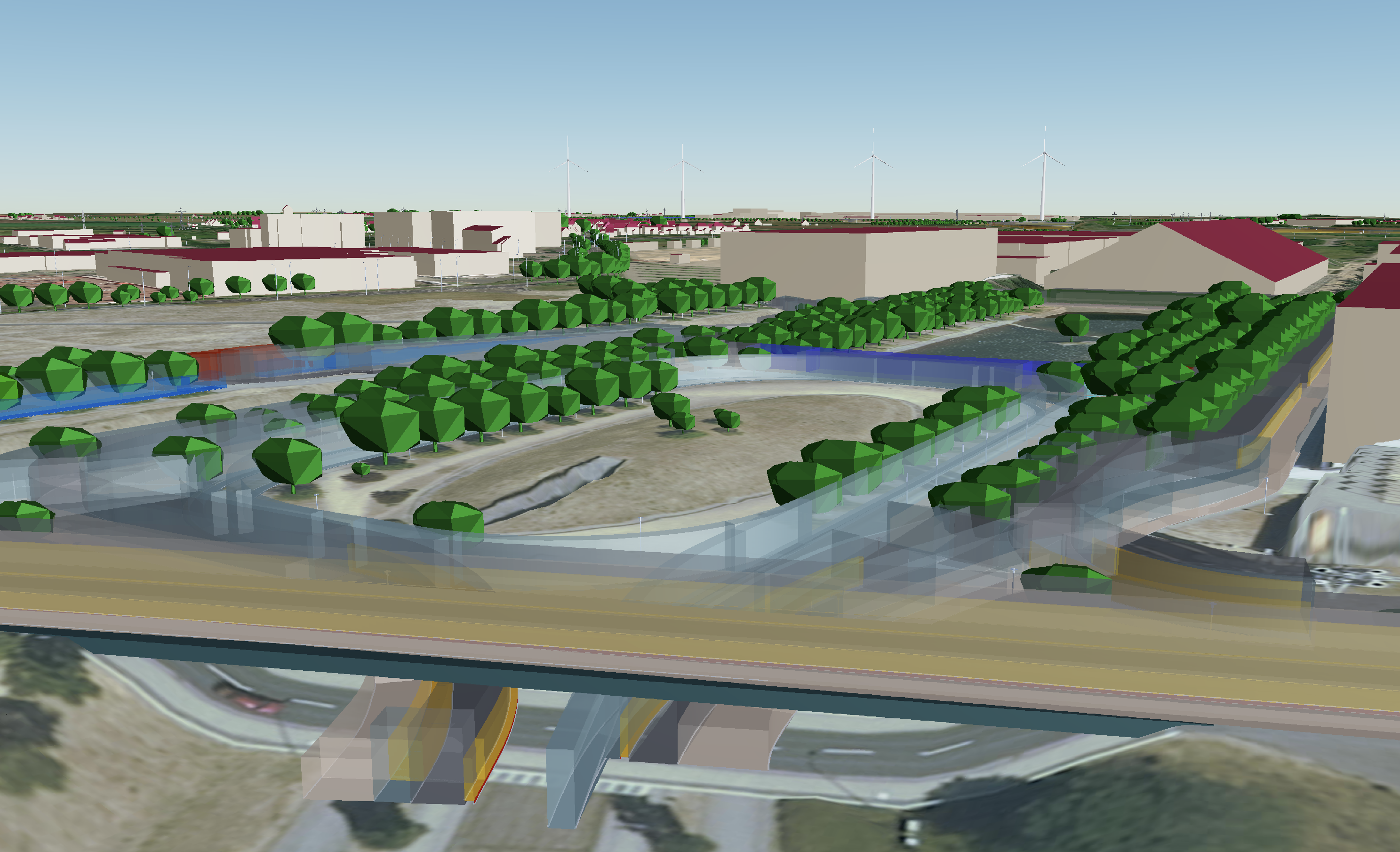 Additionally an artificial re-design of the bridge was done in the course of a student project and visualized in the following web-client. Note: The bridge design shown in this demo is not planned in reality and was only created in the course of the student project.