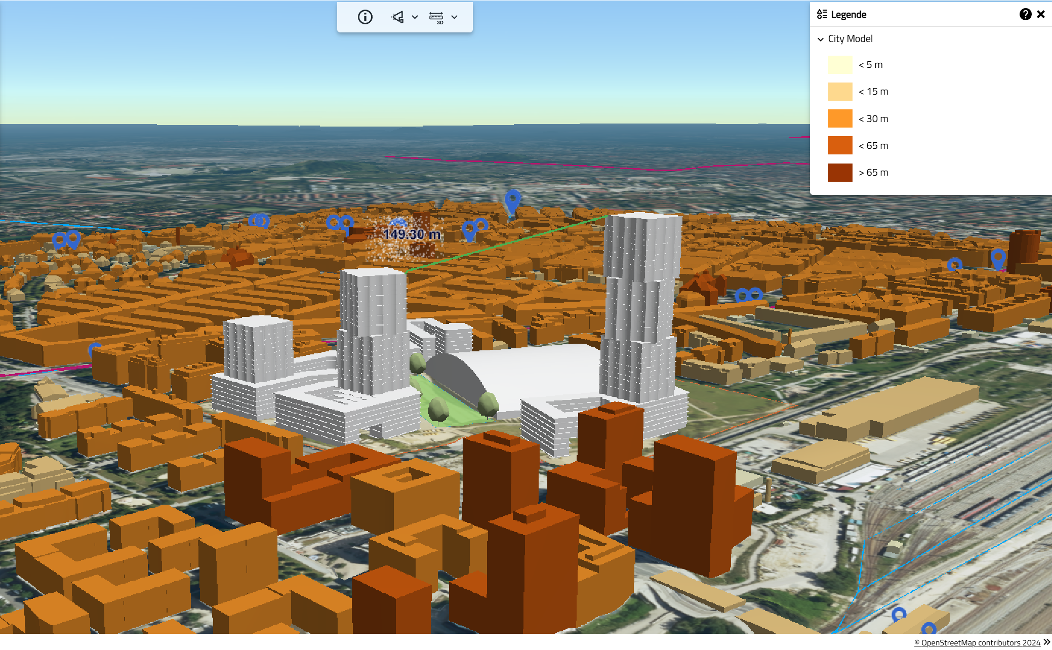 Due to the large amount of data a good internet connection is required. In case the web client is not loading properly try to de-select the LoD3 Buildings layer.