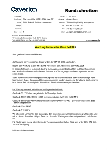 die Wartung der Technischen Gase wird in der KW 49 2025 stattfinden.