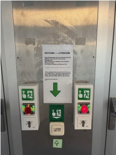 den mittleren Schalter zum Öffnen der Tür.