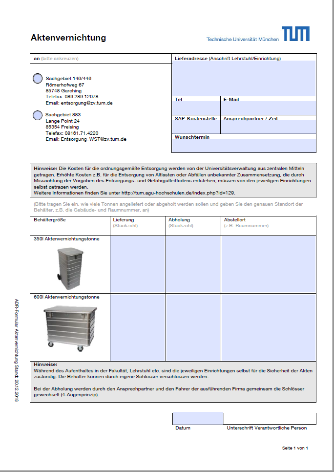 - Aktenvernichtung - Bitte untenstehendes Formular ausfüllen!