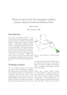 Abstract The aim of this diploma thesis is a fusion of optical and electromagnetic tracking systems with the motivation of improving guidence techniques for minimal inversive surgery. I will combine different tracking systems with different properties like accuracy and availability. The intuitive solution for fusion of two systems would be using the more accurate one if available and switch to the second one when the data of the more accurate are not available. Within this work I will try to get an even better result by statistically combining the two systems with help of several (federated) Kalman Filters.