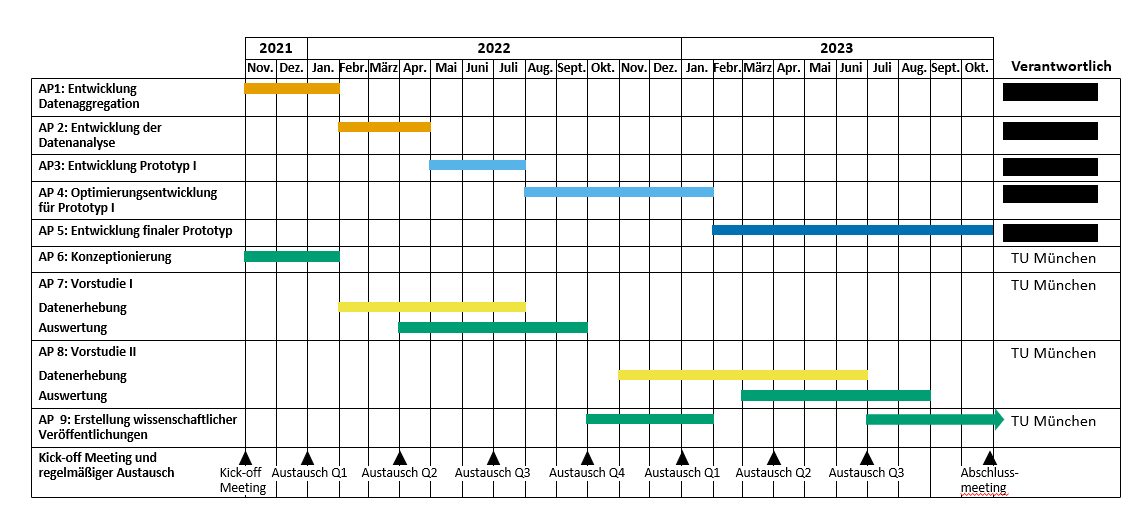Abb. 1: Beispiel für einen Projektzeitplan mit einem Gannt-Diagramm, AP = Arbeitspaket