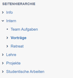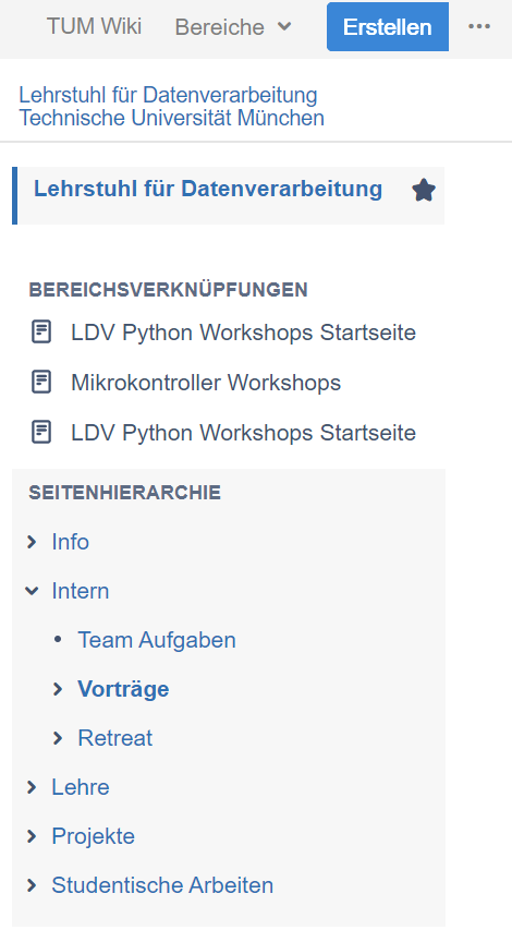 Um eine Seite anzulegen, musst du im Wiki eingeloggt sein. Navigiere auf die Wiki-Seite unter welche du die neue Seite anlegen möchtest. Beispielsweise Vorträge. | |