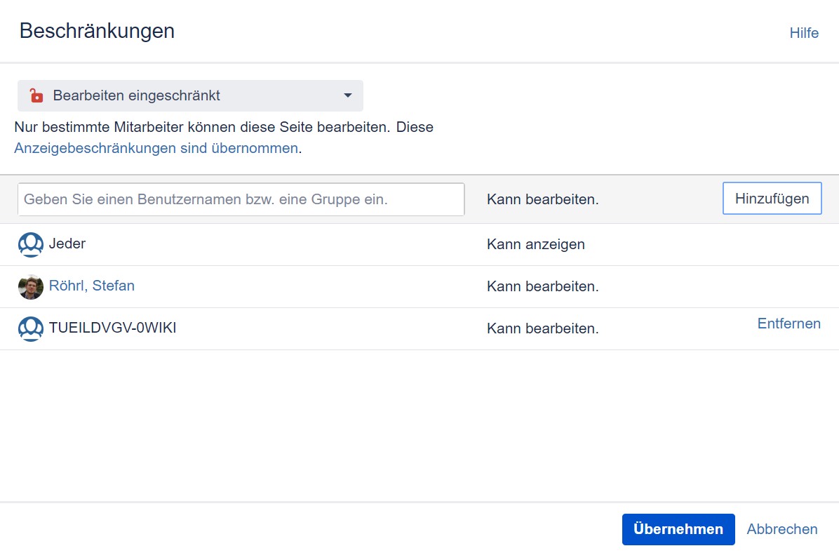 Rechte für den gesamten Wiki-Bereich (Berechigungen)