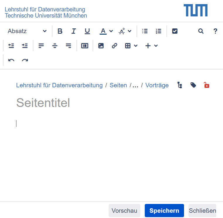 Mit einem Klick auf das Schloss-Symbol öffnet sich die Rechteverwaltung. Hier kannst du einstellen welche Rechte welche Nutzer auf der neuen Seite haben. Weitere Infos → Rechte | |