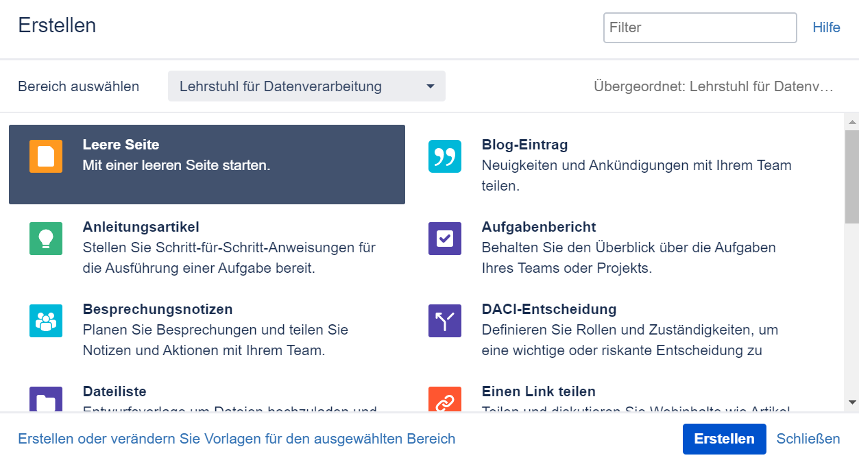 | Eine fertige Vorlage kannst du wie einen neue Seite in den Wiki-Bereich einbinden. Klicke hierzu jedoch statt "Erstellen" auf die drei ... Punkte. | |