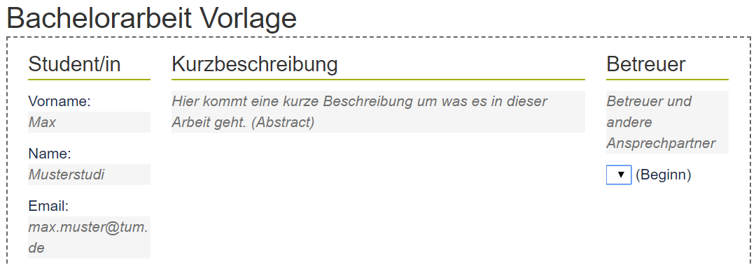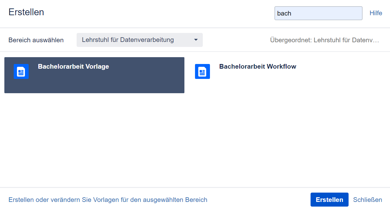 | Um die Vorlage für eine Abschlussarbeit leichter zu finden kann z.B. Bachelorarbeit in das Suchfeld eingegeben werden. | |