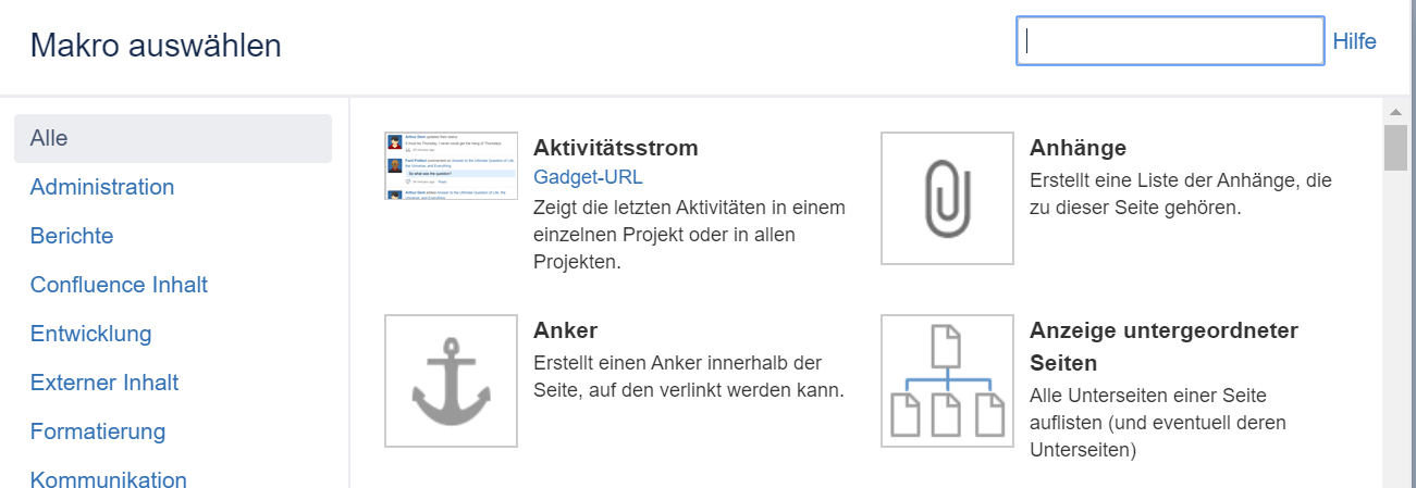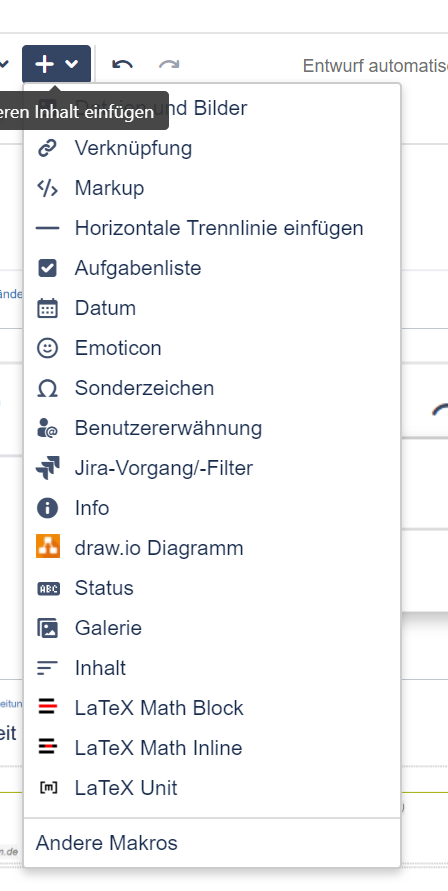 | Ein Anker ist über das + Symbol aus der Werkzleiste unter "Anderer Makros" zu finden. Nützliche ist er, um Inhalte innerhalb einer Wiki-Seite verlinken zu können. | |