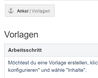 Dieser kann nun benannt und platziert werden. Beispielsweise wenn man zu Erklärung der Vorlagen springen möchte. Ankername: Vorlagen | |