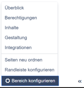 Solltest du etwas an der Einordnung oder Reihenfolge der Seiten ändern wollen, klicke unten links auf Schaltfläche "Bereich konfigurieren" und wähle "Seiten neu ordnen". |