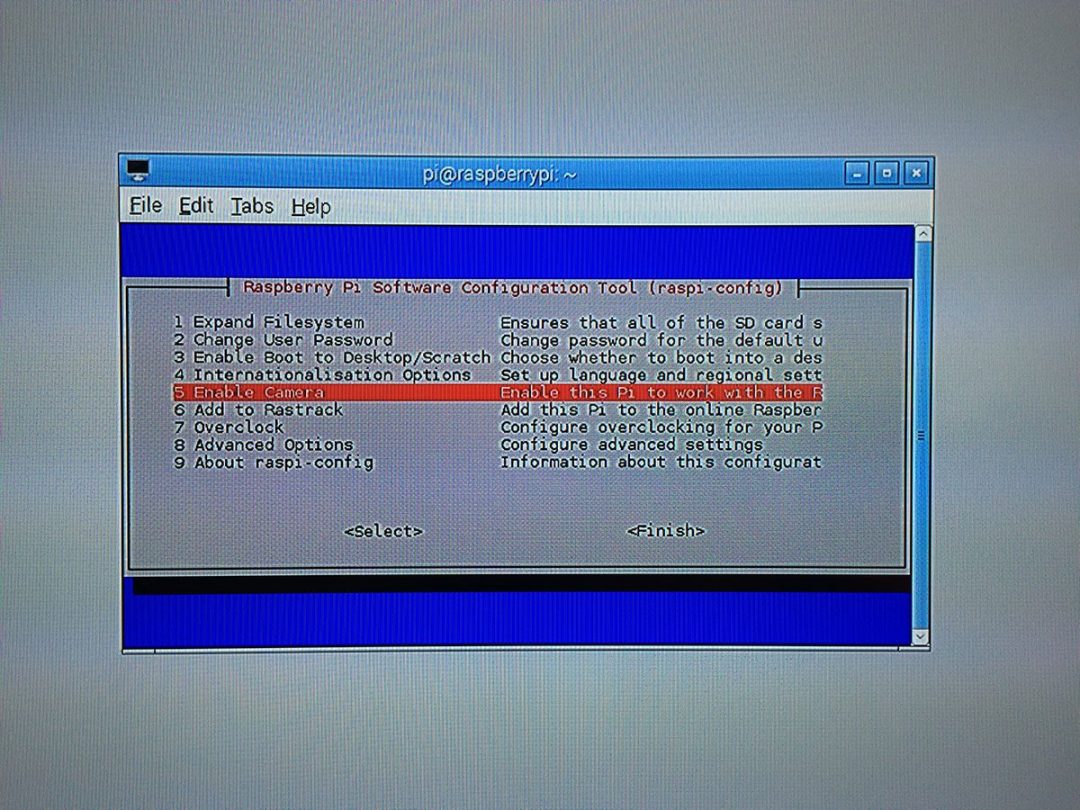 Wir haben unten im C++- Raum einen großen Spielfeld, dass schon auf dem Boden gezeichnet wurde. Dazu haben wir die Raspberry Pi Camera ganz Oben gesteckt und das Spielfeld wird perfekt aufgenommen:
