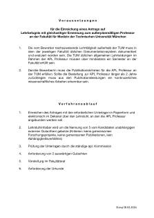 Auf Antrag der Fakultät für Medizin kann der Präsident der Technischen Universität München Privatdozenten und Privatdozentinnen nach sechsjähriger Tätigkeit als Hochschullehrer oder Hochschullehrerin zum außerplanmäßigen Professor oder zur außerplanmäßigen Professorin bestellen, wenn die entsprechenden Anforderungen erfüllt sind (Richtlinien). Die Sechsjahresfrist kann in Ausnahmefällen bei Vorliegen außergewöhnlicher wissenschaftlicher Leistungen auf bis zu vier Jahre verkürzt werden (Kriterien für eine vorzeitige apl. Professor).