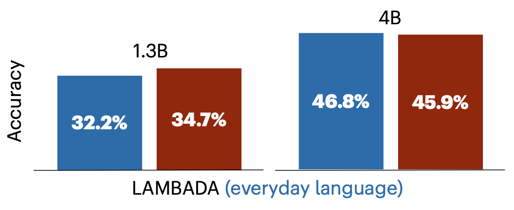 • Model sizes: 1.3 billion parameters (24 layers, 16 attention heads) and 4 billion parameters (32 layers, 32 attention heads)