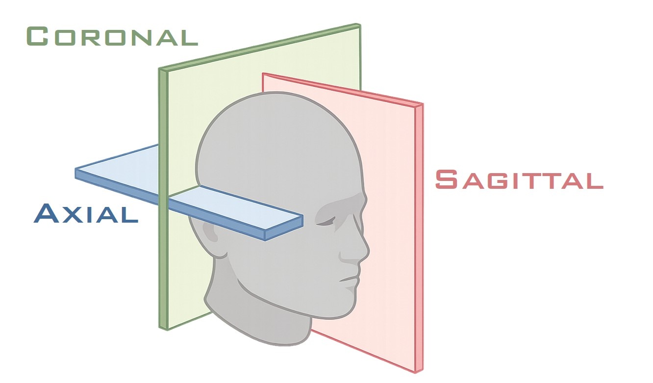 Orientation refers to the scan plane - axial, sagittal, or coronal - chosen based on diagnostic need (Figure 1).