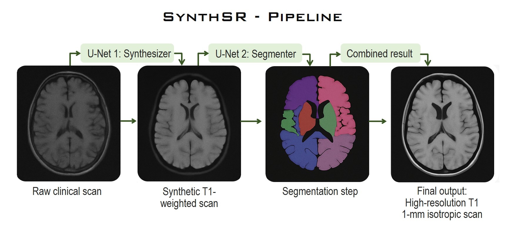 Based on: Iglesias, J. E., Billot, B., Balbastre, et al. (2023). SynthSR: A public AI tool to turn heterogeneous clinical brain scans into high-resolution T1-weighted images for 3D morphometry. Science Advances, 9(5). https://doi.org/10.1126/sciadv.add3607