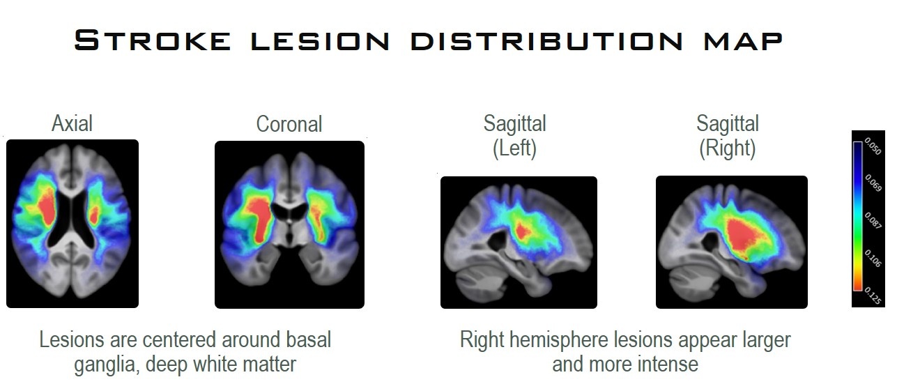 The resulting atlas revealed familiar lesion patterns in the basal ganglia and deep white matter—insights that have been stated in prior studies but are generally difficult to achieve when registration fails due to anatomical voids.