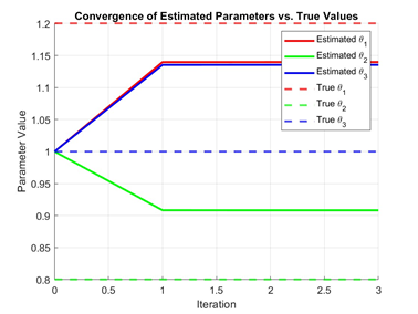 Convergence of Estimated Parameters vs True Values | Convergence of Error |