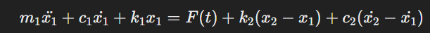 The differential equations governing the motion of a Classical Tuned Mass Damper (CTMD) system describe the dynamic interactions between the primary structure and the Tuned Mass Damper (TMD). These equations are derived using the principles of Newtonian mechanics and describe how the displacement of the primary structure (x1) and the TMD (x2) evolve over time in response to external forces and internal damping.