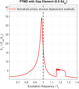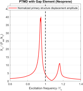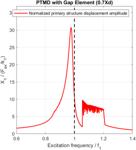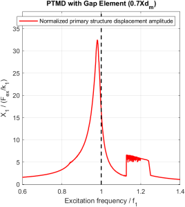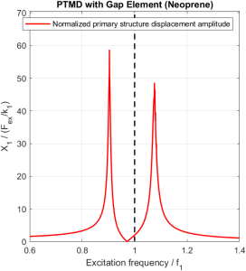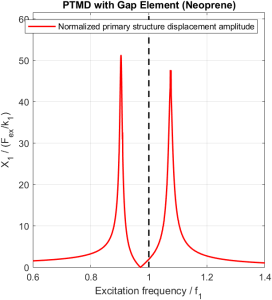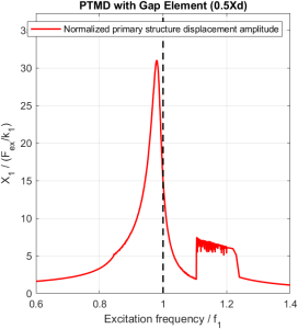 Additionally, ensuring that the PTMD performs better than the Classical Tuned Mass Damper (CTMD) across a broad range of excitation frequencies is crucial. The goal is to minimize the maximum displacement amplitude (X1) across these frequencies, ensuring optimal performance in real-world conditions.