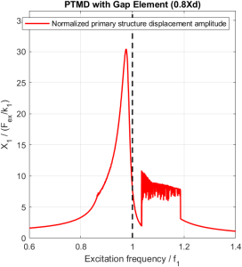 - Provides a detailed study on the nonlinear response of PTMD systems, particularly the effects of gap distance and impact forces on vibration reduction.