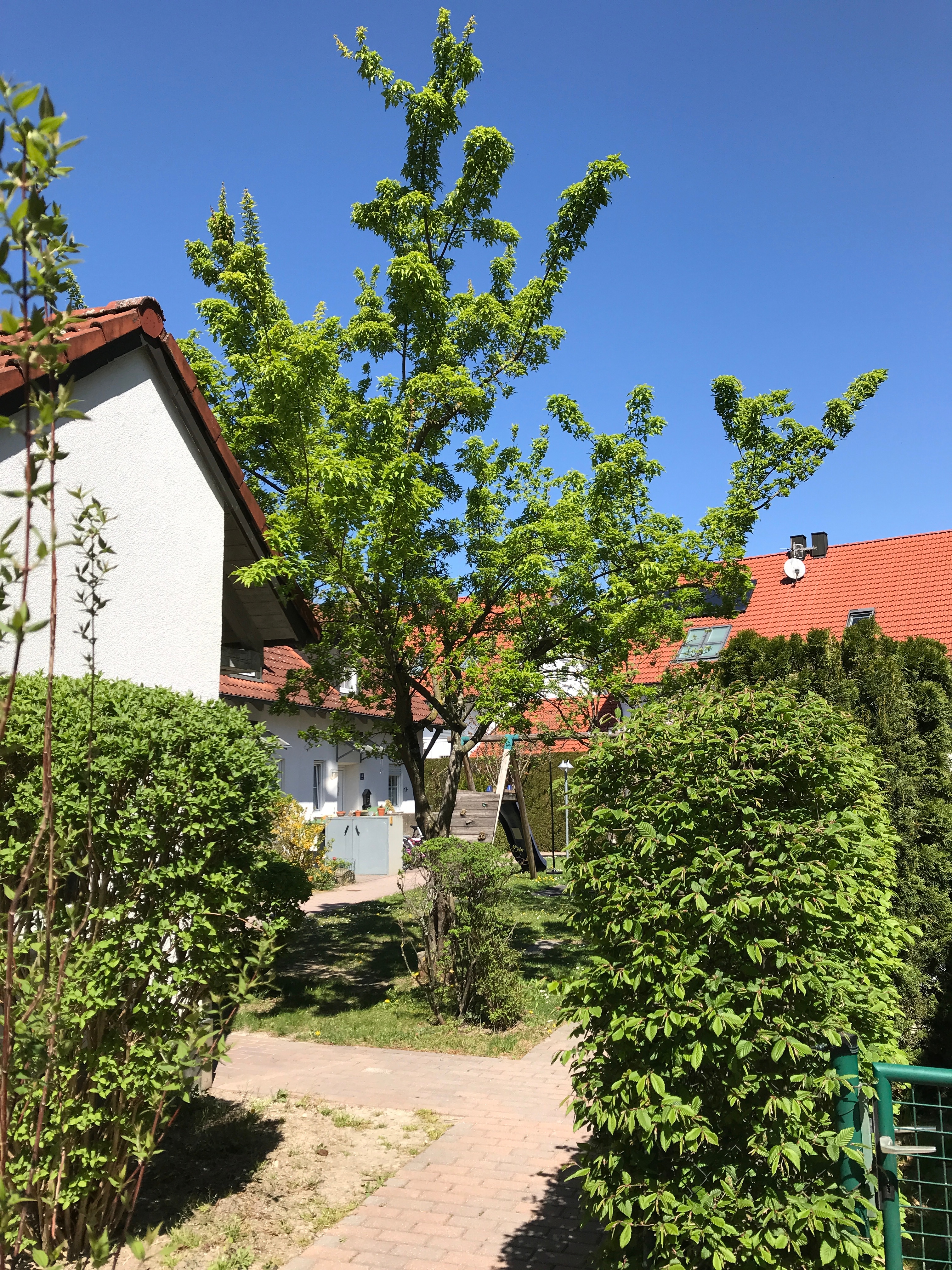 Für gewöhnlich ist der Spielplatz ein paar Meter neben unserem Garten gut besucht.