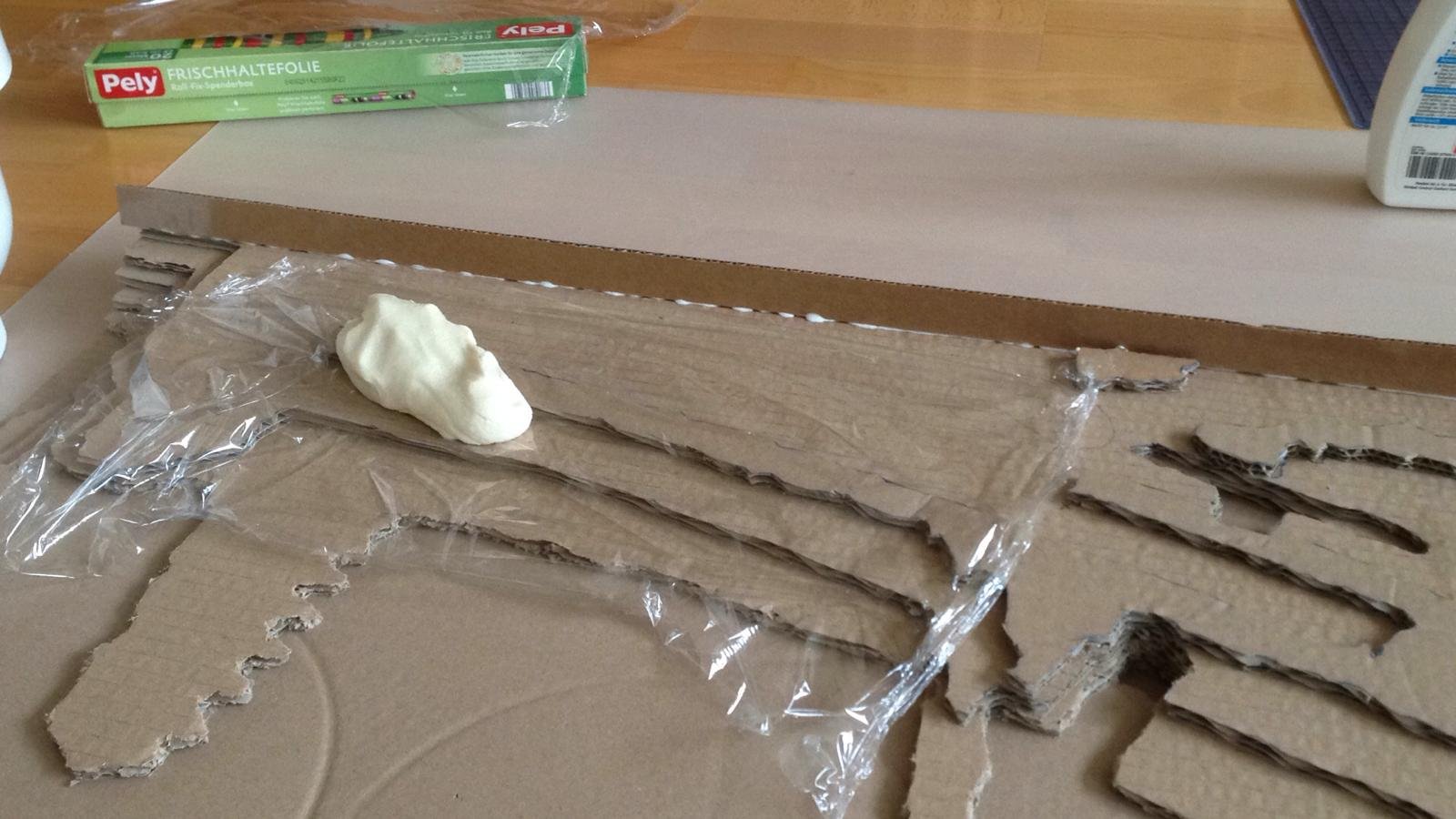Freitagmittag: Bewaffnet mit Cutter und zig Pappplatten belagere ich das Wohnzimmer.