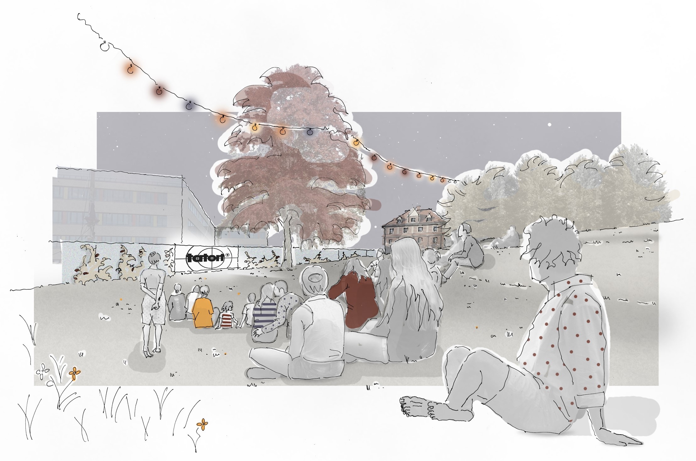 Durch die entstehende Neubebauung auf dem ehemaligen Viehhofgelände kommt es zu einem Aufeinandertreffen verschiedenster Nutzergruppen. Die Anlieger der neuen Wohnstrukturen, die Besucher des Volkstheaters und die Nutzer des ehemaligen Bahnwärter Thiel, konkurrieren um den Freiraum im Süden des Geländes. Ein weiteres Problem liegt in der drohenden Abschottung durch die entlang der Bahngleise geplante Lärmschutzwand. Das Element „Bahn“, welches der ausschlaggebende Faktor für die Standortwahl des historischen Vieh- und Schlachthofs war, kann seine identitätsstiftende Wirkung somit nicht entfalten. Durch den Einsatz von Topografie wird eine Verbindung zwischen dem Bahngelände und der Freifläche mit angrenzender Bebauung geschaffen. Diese Betonung des historischen Elements Bahn, sowie die Vernetzung des Gebiets in sich, stärkt die Identität vor Ort. Des Weiteren entstehen für alle Beteiligten gut nutzbare Teilräume, wodurch ein Miteinander der Akteure in der neuen Zusammensetzung ermöglicht wird.