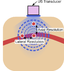 The axial resolution defines the capability to distinguish different elements in the direction of propagation of the US-wave. Lateral resolution defines the capability to distinguish different elements perpendicular to the direction of propagation of the US-wave. The axial- and lateral resolution are shown in Figure 2.[5]
