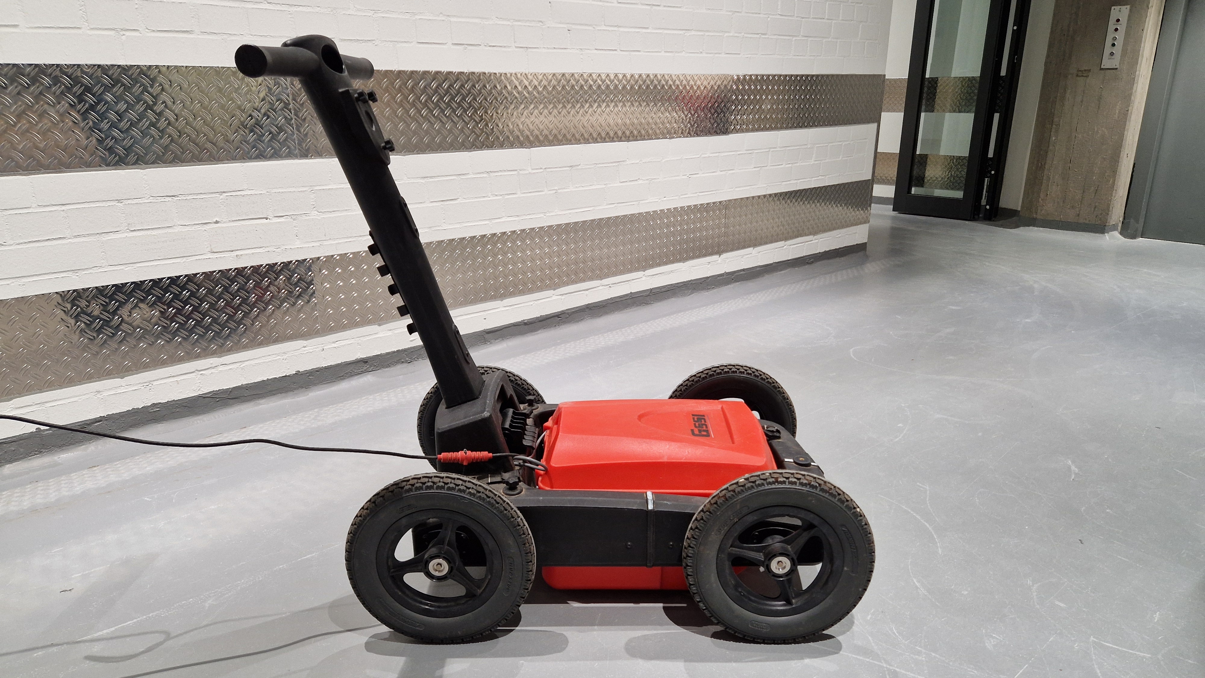Figure 5: Handheld proceq GP8000 SFCW Radar Antenna for Concrete-GPR at the TUM Chair for Non-Destructive Testing. Source: Thomas Hochhuber. |