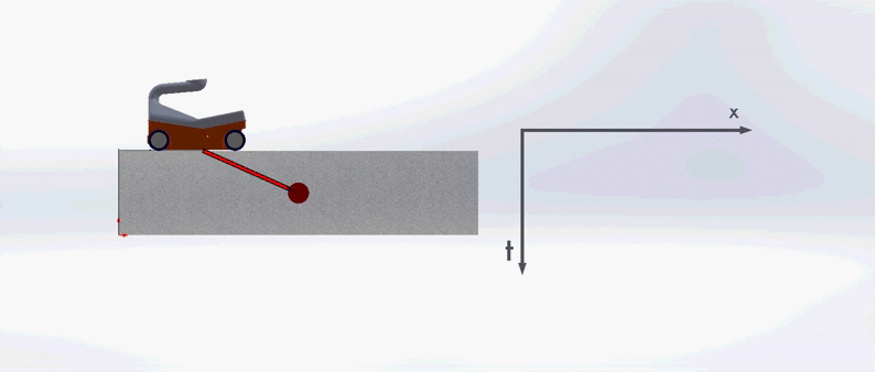 Most Radar methods depend on detection of reflected signals (echo radar). Short radio pulses are sent via a transmitting antenna (transmitter) and propagate spherically from the source, then time is measured until the reflected or scattered pulse can be detected by a receiving antenna (receiver). A computer then calculates the distance to the reflecting object. To locate an object, multiple measurements at different locations must be taken, so the location can be interpolated from individual distances. For correct interpretation of the travel times, the ε-Value of the material must be known. This is often done with standard values for materials like dry concrete or gravel. Moving over an object like a pipe as shown in figure 2 causes a characteristic reflection hyperbola in the radargram. Together with the top and bottom layer reflections, it is the basis for determining its exact placement in the specimen. In the radargram, the measurement path is plotted on the X-axis, the runtime of the reflections on the Y-axis. The location of the hidden Object can be determined at the top of the shown hyperbola.