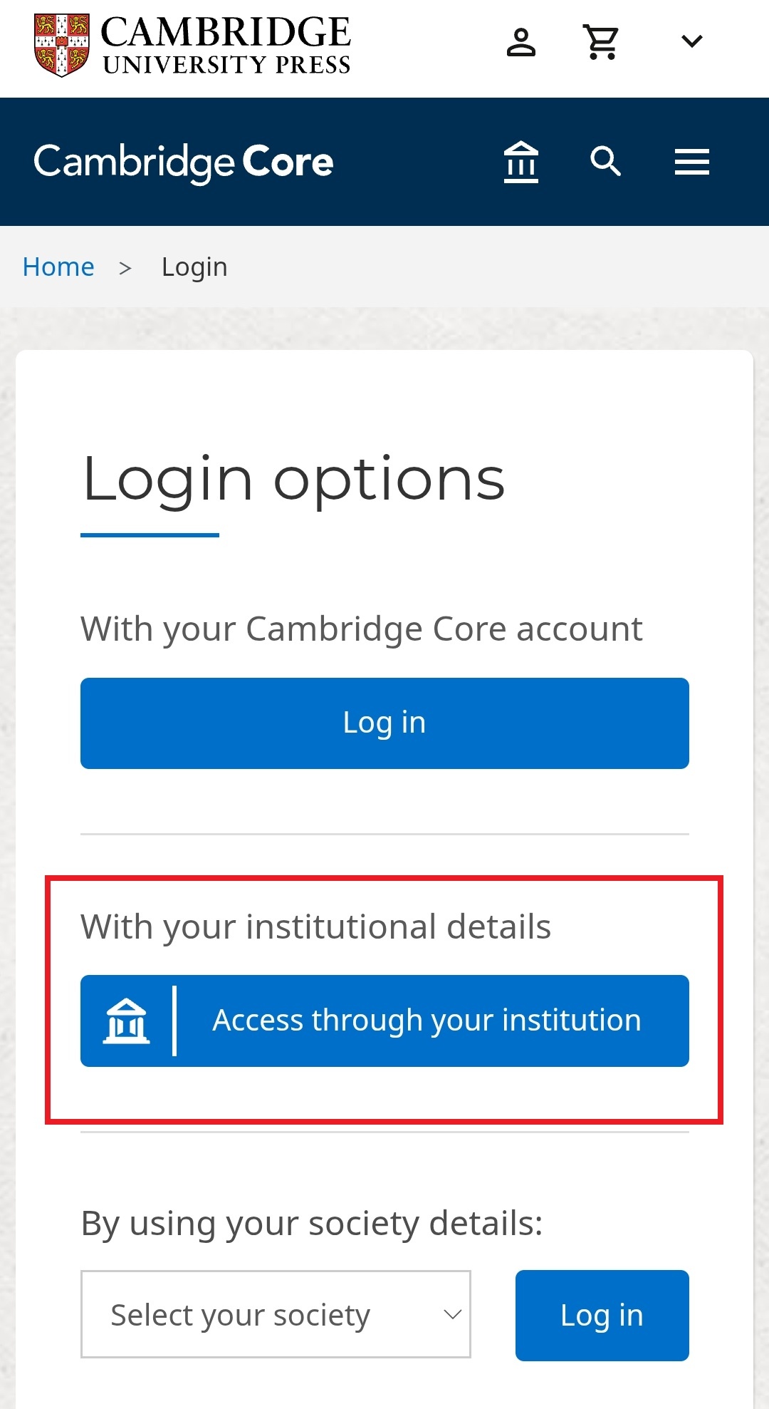 - Suchen Sie nach Anmeldemöglichkeiten mit der Bezeichnung "Institutional Login", "Login via Shibboleth", "Single Sign-on" oder ähnlich – die verwendeten Begriffe können von Anbieter zu Anbieter variieren oder finden sich ggf. erst auf einer zweiten Seite hinter der allgemeinen "Log in"- oder "Sign in"-Option.