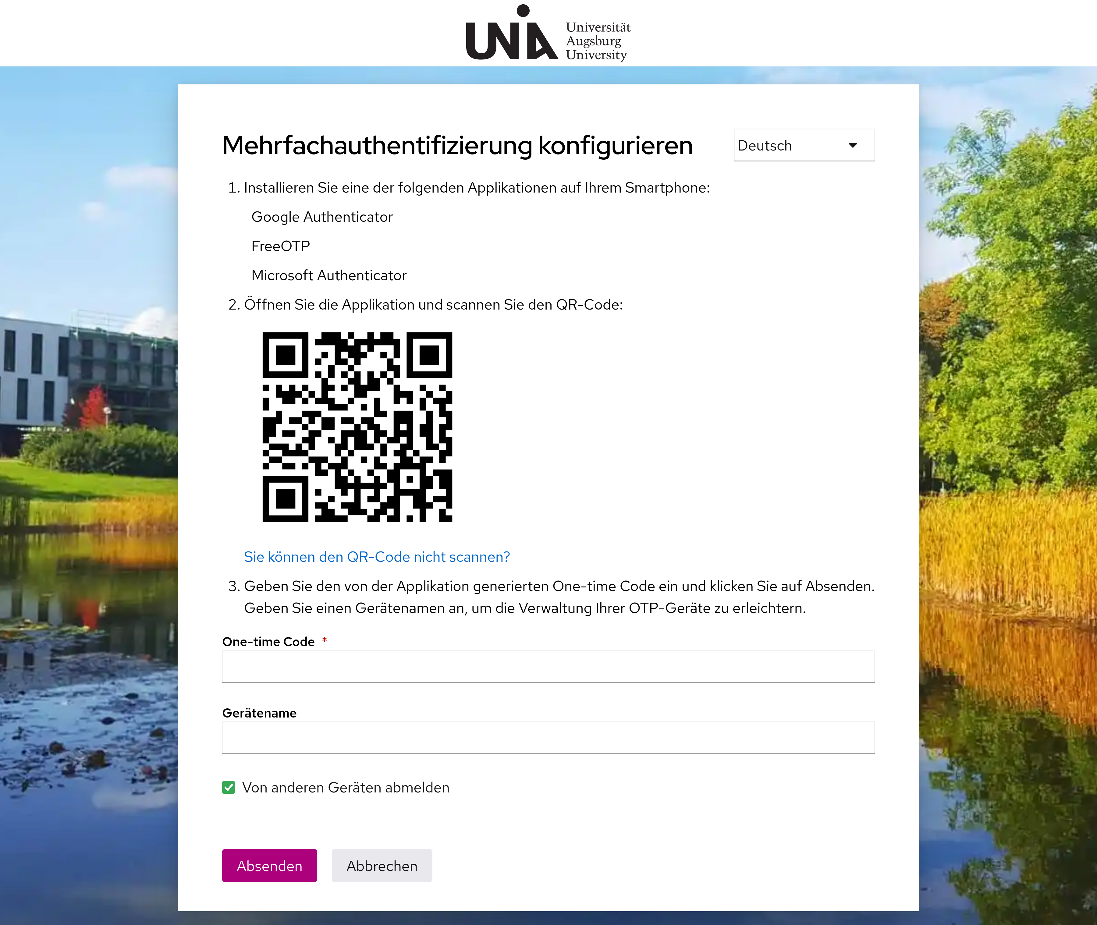 - Es wird nun die Konfigurationsseite mit dem QR-Code für die Authenticator-App angezeigt