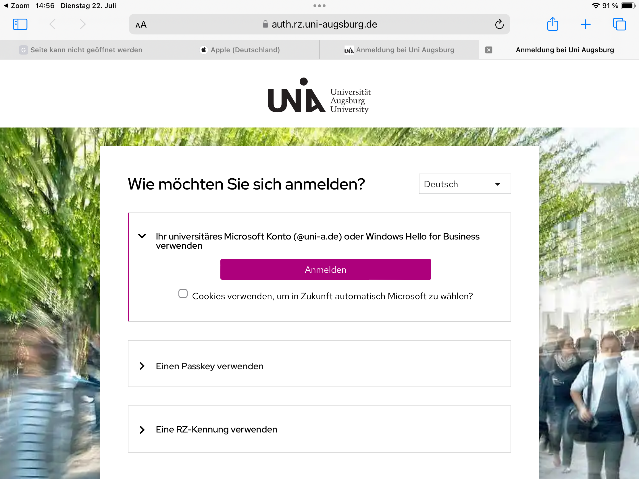 8. "uni-augsburg" (.zoom.us) angeben und "Fortfahren"
