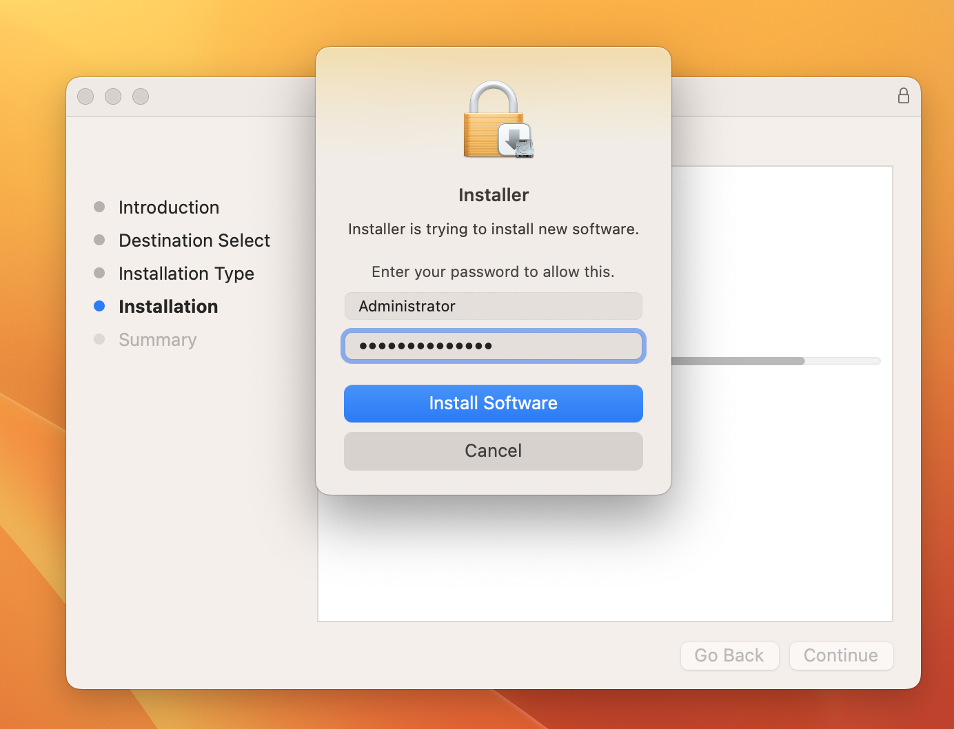 3. "Fortfahren" und "Installieren"