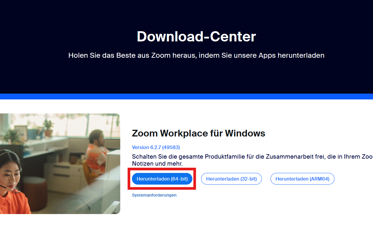 1. Installationsdatei für Windows herunterladen: Zoom-Clients