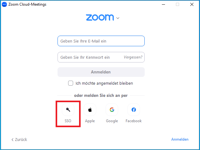 7. Anmeldeoption "SSO" wählen