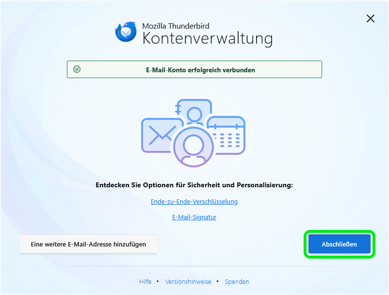 Thunderbird ist eine kostenlose, quelloffene Software, die für diverse Betriebssysteme (Windows, Linux, macOS) zur Verfügung steht, zusätzlich zur E-Mail kann diese auch mit unseren anderen Groupwarediensten (Kalender, Adressbuch) verbunden werden. Die Schritte sind nach der Installation für jedes Betriebssystem nahezu identisch.