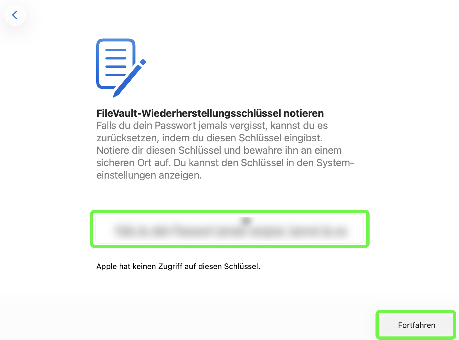 - Wir empfehlen grundsätzlich die Festplatten-Verschlüsselung (FileVault) zu aktivieren