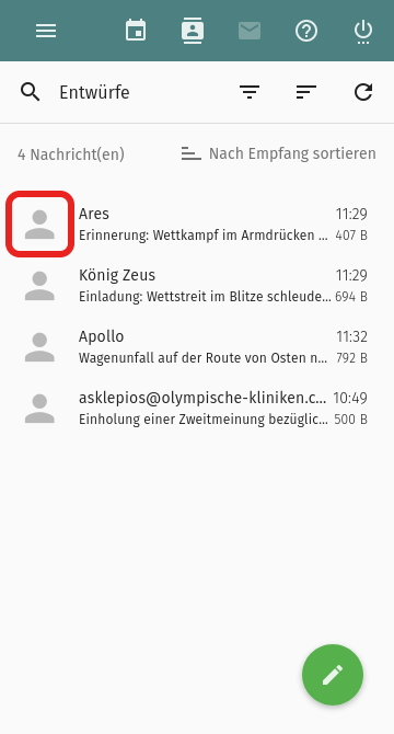- Um nun eine Mehrfachauswahl zu treffen, den Cursor auf das Avatar-Bild einer zu markierenden Mail bewegen