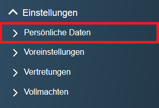 Falls Sie zu einem späteren Zeitpunkt Änderungen vornehmen möchten, erfolgt der Aufruf über die linke Navigationsleiste im Menüpunkt Einstellungen → Persönliche Daten. | |