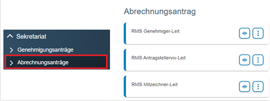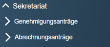 Nachdem Sie von einer anderen Person eine Vollmacht erhalten haben, erschent bei Ihnen links in der Menüleiste der zusätzliche Menüpunkt Sekretariat und der Unterpunkt Abrechnungsanträge . | |