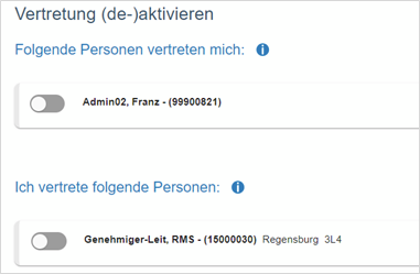 Darüberhinaus besteht die Möglichkeit, sich selbst als Vertretung für eine andere Person einzusetzen, z.B. wenn diese unvorhergesehen für längere Zeit ausfällt