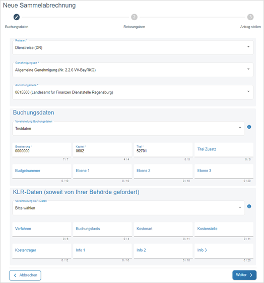 Öffnen Sie die Eingabeassistenten im Menü Neuer Abrechnungsantrag mit der Funktion „Neue Sammelabrechnung“. | |