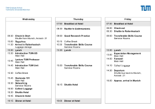 - Departure on Wednesday: Arcisstr. 21, main entrance at 10.00 am.