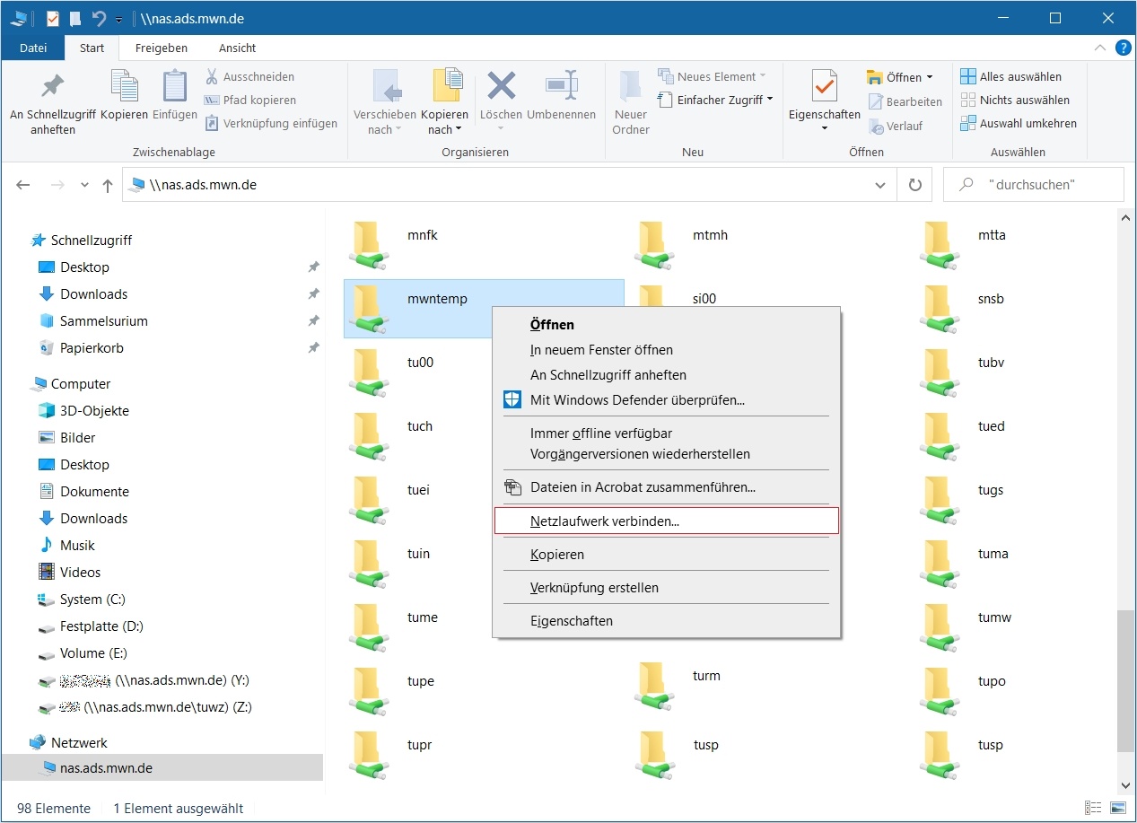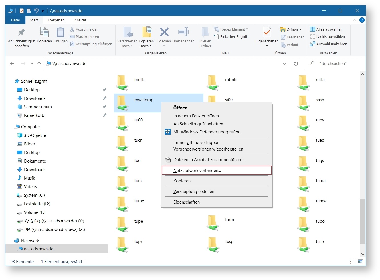 - Auf den freigegebenen Ordner (z.B. auf dem Netzlaufwerk) zugreifen.