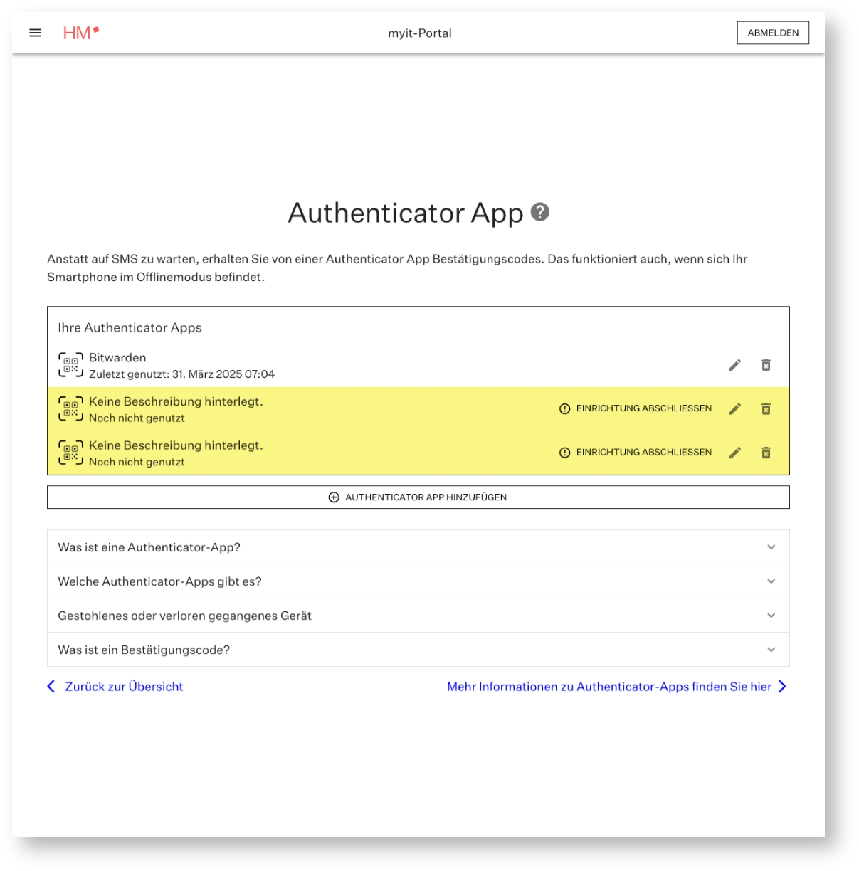 4. Klicken Sie auf "Authenticator App hinzufügen". 5. Öffnen Sie Ihre Authenticator-App (z.B. Microsoft Authenticator oder Google) auf dem Smartphone | |